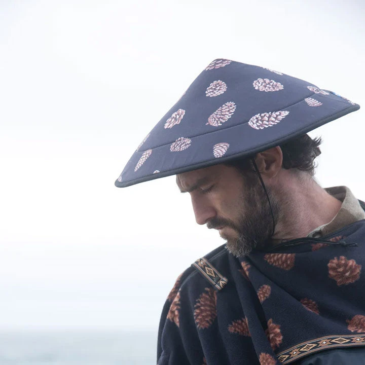Semi padded circular shaped hat with toggle lock, quick-dry poly mesh headpiece, patterned nylon tubular webbing with KAVU adjustment.Â