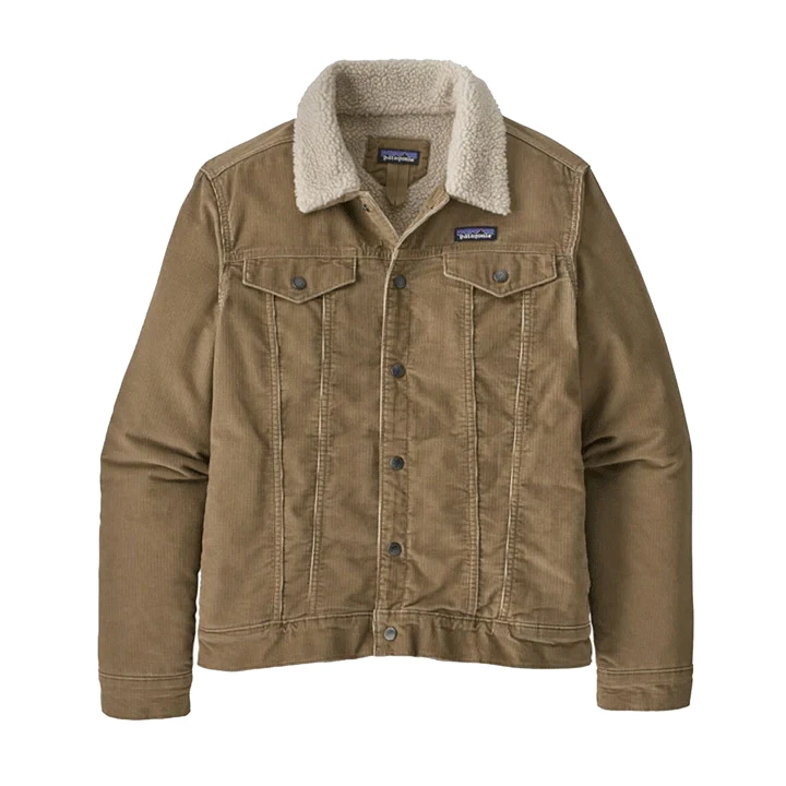 We took the welcoming warmth of our favorite long-bed truck and put it into this warm jacket. It has a soft 14-wale corduroy exterior made from 100% organic cotton. Inside, a plush lining of 100% polyester (70% recycled) ¼”-pile fleece traps heat and provides a smooth finish for exposed skin; the sleeves have sleek polyester taffeta to slide easily over other layers. The classic trucker design features two chest pockets with snap flaps, two handwarmer pockets, adjustable cuffs with snap closures and a button-down front placket to make venting adjustments a breeze. It’s also Fair Trade Certified™ sewn, which means the people who made it earned a premium for their labor. Hip length.