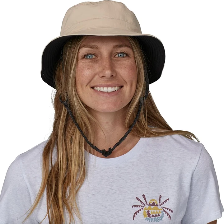 Be it waves, waders or beach towels, this brimmed bucket hat provides secure sun protection for on-water shenanigans and is made of 95% nylon (65% recycled)/5% spandex with a DWR (durable water repellent) finish. Fair Trade Certifiedâ„¢ sewn.